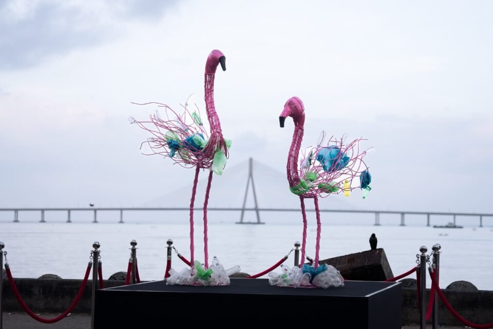 These sculptures, made from wire mesh and locally sourced materials, are not just artistic expressions but a call for reflection. Each piece depicts wildlife interacting with human waste, a subtle yet poignant reminder of how our daily habits—from plastic use to urban expansion—impact ecosystems. One of the installations depicts an Asiatic Black Bear with its head caught in a discarded plastic container, representing how animals unwittingly become victims of human waste. Another sculpture portrays two Flamingos entangled in plastic, symbolizing the disruption to bird habitats caused by pollution. At Juhu Beach, the focus shifts to marine life, with a simple yet evocative sculpture of Turtles trapped in nets and surrounded by waste, a representation of the challenges sea creatures face.