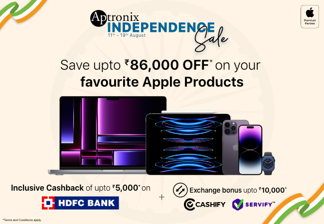 Eyeing on upgrading your Apple device? Well Aptronix, a one stop shop for all your Apple needs, unveild Independence Day offers on iPhones, MacBooks, iPads, and Apple Watch to celebrate the 77th Independence day.