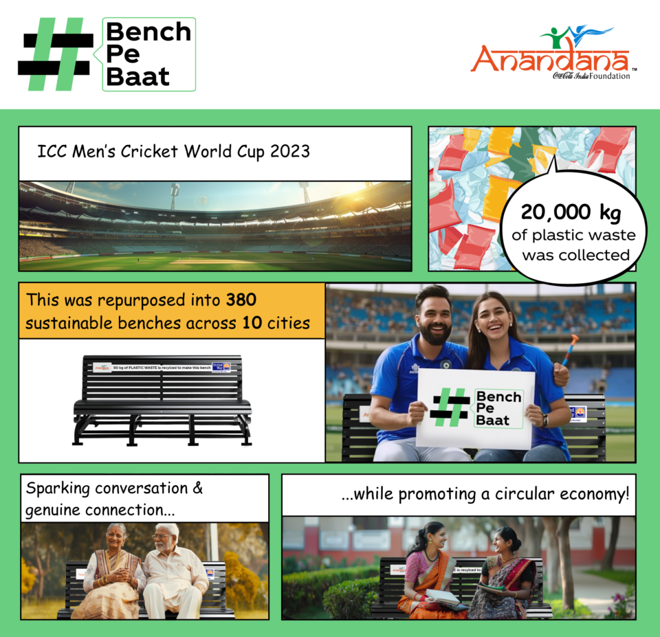 George Aikara, CEO, United Way Mumbai, said,“We are thrilled to collaborate with Coca-Cola India on the #BenchPeBaat campaign. By transforming plastic waste gathered during the ICC Cricket World Cup into eco-friendly benches, we are not only addressing the waste problem but also enriching our communities with innovative street furniture, creating vibrant social spaces. This initiative exemplifies sustainable practices, promoting environmental awareness, while the benches serve as focal points for community engagement.”