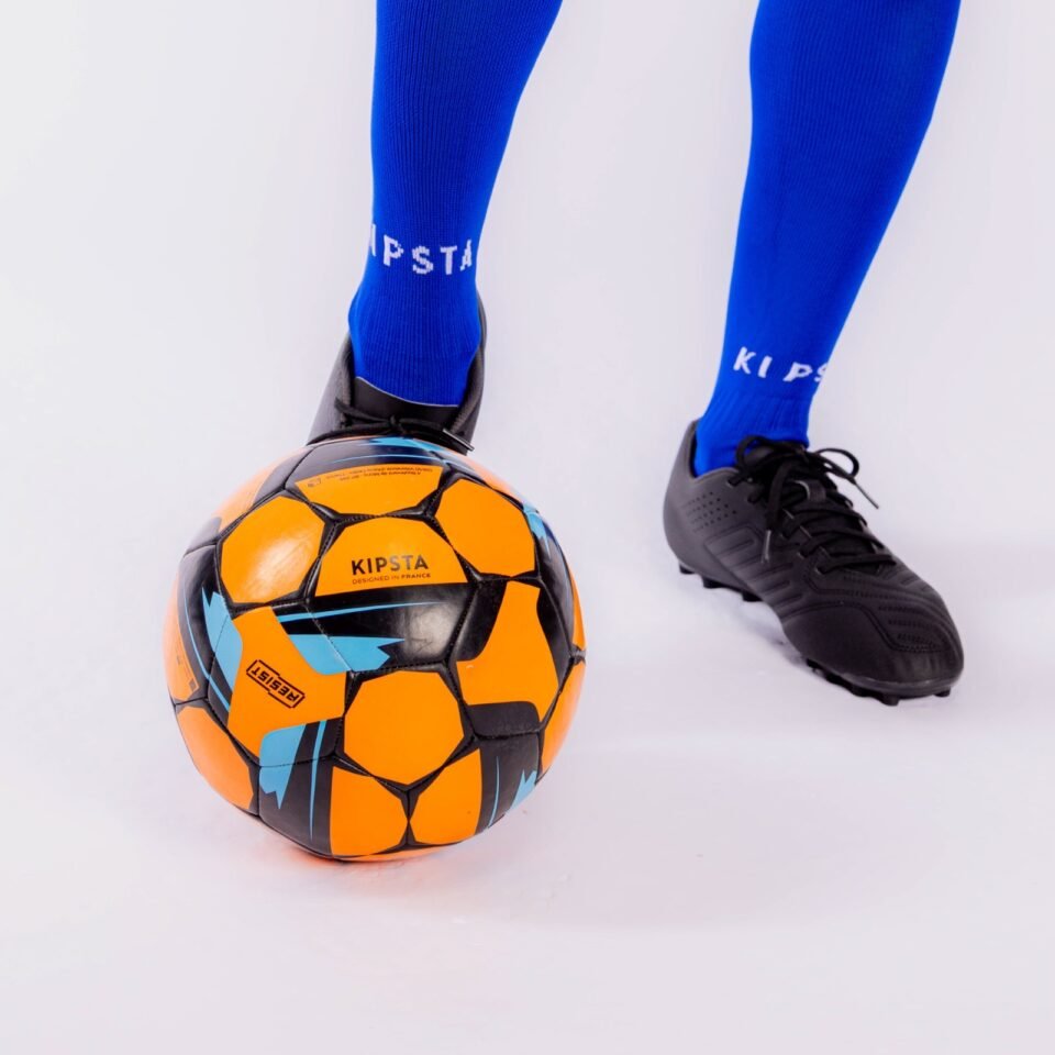 2. Club High Resist Ball – The Club High Resist Ball is crafted for competitive and club-level play, offering enhanced durability combined with refined control. Its rubber outer cover lamination with foam delivers a softer feel and precise ball response while maintaining resistance on harder surfaces. Moreover, the thermofusion stitching technology ensures a better lifetime of the ball. Engineered for use across multiple grounds from artificial and natural grass to gravel and mud, it complies with FIFA Basic standards to ensure quality and consistency. Reflecting Decathlon’s belief in democratizing sport, the Club High Resist Ball provides advanced performance at an accessible price, supporting players who aspire to elevate their game. The Club High Resist Ball, White & Blue, is also available in Size 4 for kids.
