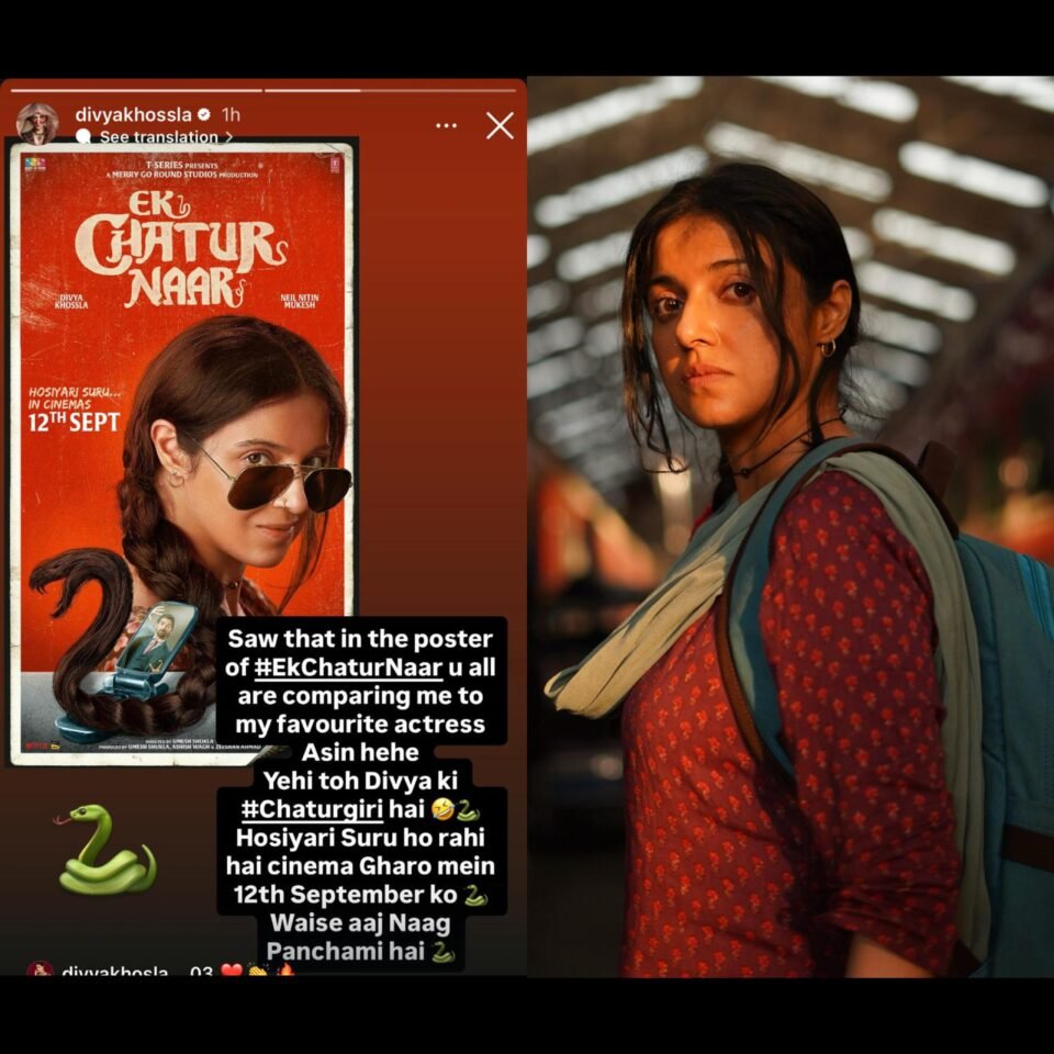 Recently, Divya reacted to the same in a hearty way by penning a lighthearted note. Sharing the look on her Instagram stories, Divya wrote, “Saw that in the poster of #EkChaturNaar, you all are comparing me to my favourite Asin hehe..Yehi to Divya ki #Chaturgiri hai…Hosiyari Suru ho rahi hai cinema gharo mein 12th September ko..Waise aaj Nagpanchami hai.”