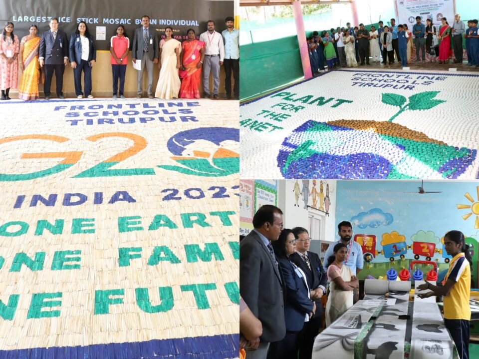 Bhavana Navaneeth, Adjudicator, Elite World Records, stated that in an extraordinary display of creativity and talent, Dhanyaasri.A.K, a Grade X student from Frontline Millennium School, has made the largest ice-sticks mosaic. Dhanyaasri dedicated her time, spending more than 55 hours to complete the masterpiece. Using 65,000 ice sticks in four vibrant colors, the mosaic measured 20 square meters. The artwork depicted the G20 India 2023 logo, accompanied by the caption “G20 India 2023 – One Earth, One Family, One Future.” This record-setting mosaic is an inspiration to young individuals worldwide, showcasing the power of art in conveying meaningful messages. Congratulations to Dhanyaasri and Frontline Millennium School for their unwavering support and encouragement, she further added.
