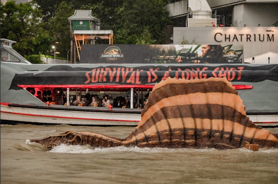 Karan Sonawane’s #JurassicJourney kicked off today as they witnessed giant Spinosaurus dinosaurs appear on the Chao Phraya River in Bangkok as part of a jaw-dropping promo for Jurassic World: Rebirth.