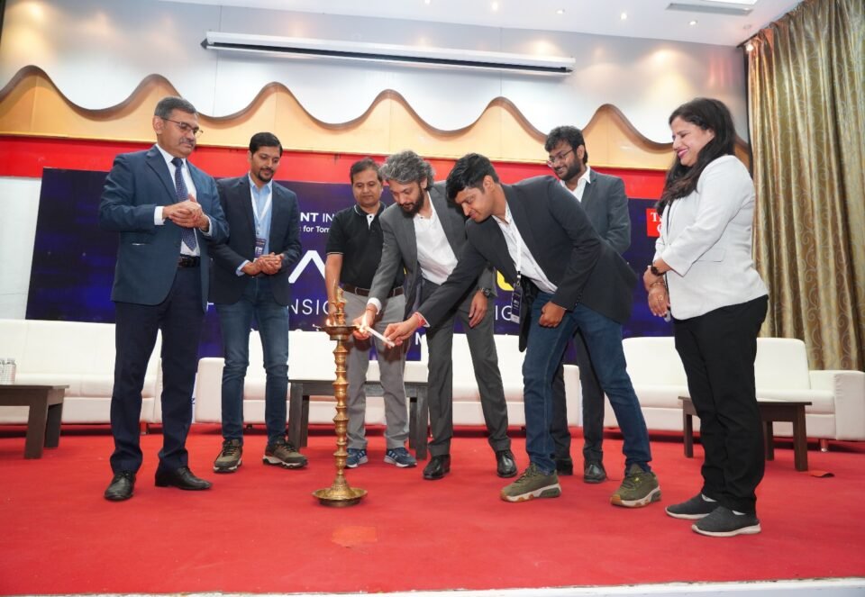 The day began with a grand opening ceremony graced by prominent dignitaries such as Mr. Narasimha Komar (IPS), who was the guest of honor, Prof. Dinesh Awasthi (Vice Chancellor of L.J. University), Dr. Manishbhai Shah (President, LJK Trust), Sh. Rohitbhai Patel (Academic Advisor of L.J. University). The event began when the dignitaries and members of our founding team—Mr. Ashish Kasama (Co-founder of Lucent Innovation), Mr. Nitesh Kasma (Co-founder of Lucent Innovation), Mr. Ruchir Kakkad, CEO of WebOccult Technologies, and Ms. Disha Joshi, CFO of WebOccult Technologies, Bhumin Vadalia (Marketing Director of WebOccult Technologies)—lit a ceremonial lamp!