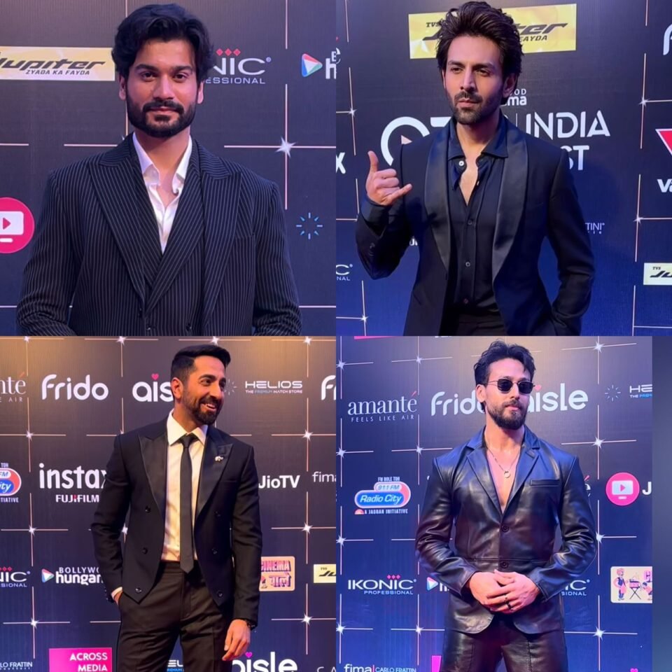 *1. Kartik Aaryan* Kartik set the bar high with his sleek black tuxedo, exuding timeless elegance. His choice of an open-collared shirt added a touch of casual flair while keeping it effortlessly stylish. Kartik’s easygoing vibe paired with his dashing look made him one of the standout stars of the night.