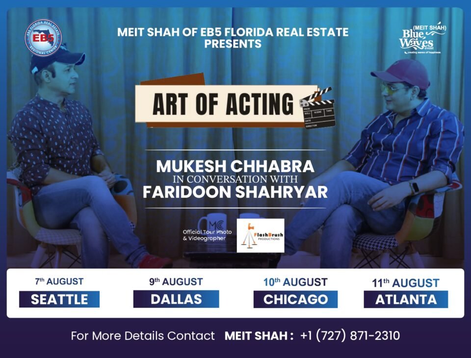 The ‘Art Of Acting’ USA tour with Mukesh Chhabra and Faridoon Shahryar is scheduled to be held in Seattle on August 7, Dallas on August 9, Chicago on August 10 and Atlanta on August 11. Flashbrush Productions, a leading name in USA is handling the Production for the entire Tour.