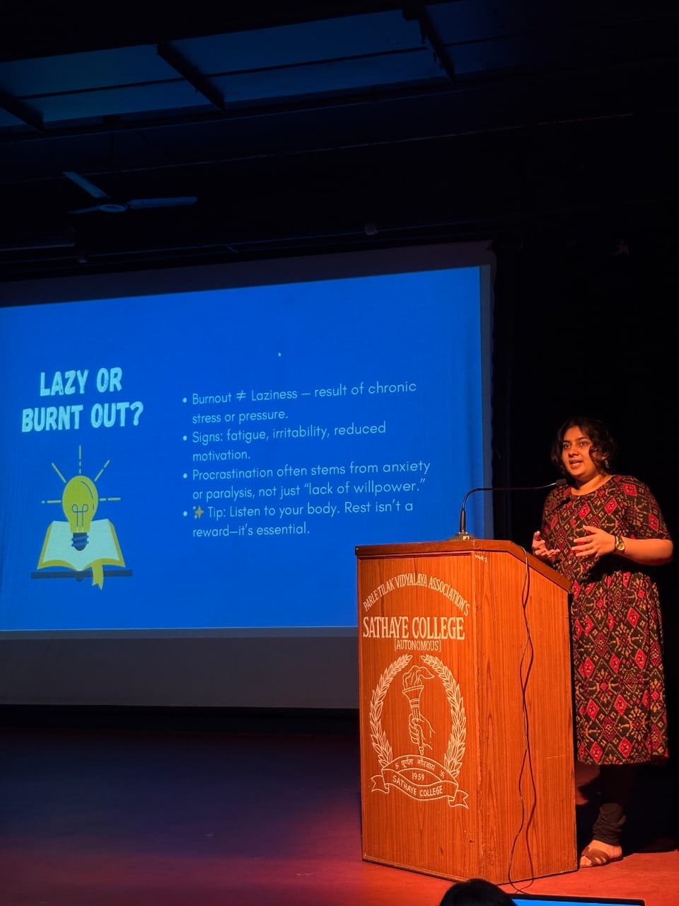 PTVA Saathye College (Autonomous) remains dedicated to the holistic development of its students, and this mental health workshop stands as a testament to its sensitive and forward-thinking approach. By prioritizing mental health alongside academic excellence, the college reinforces its identity as a responsible and student-centric institution. Principal Dr. Madhav Rajwade expressed confidence that such workshops are highly beneficial, especially at a time when many students feel confused and stressed due to the changes in the new educational structure.