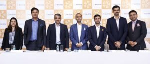 (L-R): Ms. Mrinali Doshi (DAM Capital Advisors Limited); the management of Saatvik Green Energy Limited – Mr. Prashant Mathur, CEO; Mr. Abani Kant Jha, CFO, Mr. Neelesh Garg, CMD; Mr. Manik Garg, MD; Mr. Shashank Rathi (Motilal Oswal Investment Advisors Limited); and Mr. Vikas Khattar (Ambit Private Limited.) at the press conference to announce Saatvik Green Energy’s forthcoming Initial Public Offering.