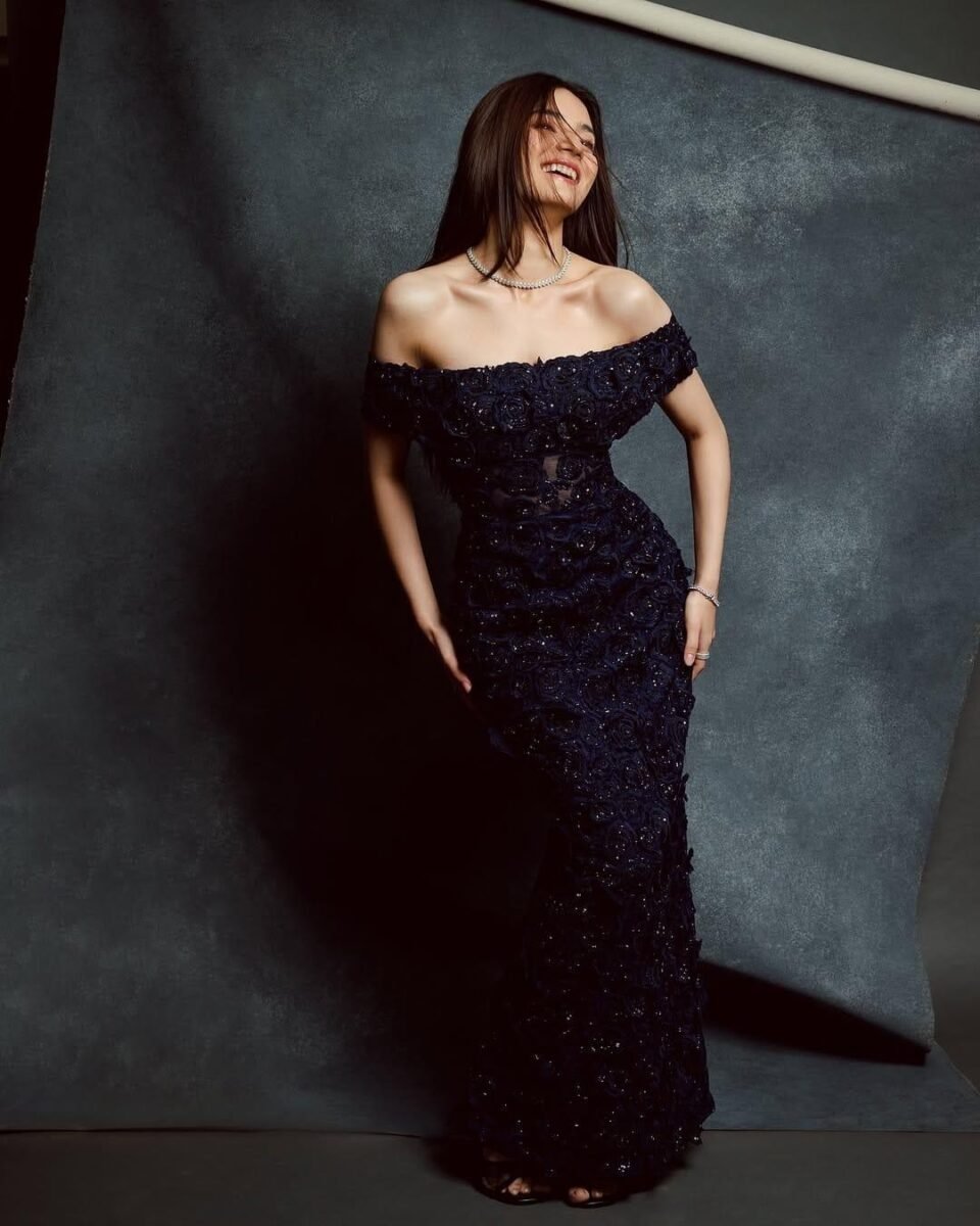 *Pratibha Ranta:* Pratibha Ranta exudes modern-day elegance in a midnight blue gown, adorned with roses and slight embellishments all over. The body-hugging piece accentuated her curves, and the off-shoulder sleeves highlighted her neckline. She accessorised her outfit with a sleek neckpiece, and a bracelet, letting her outfit take center stage.